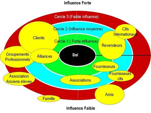 - Niveau 3 : influenceurs périphériques, avec un effet plus diffus voire indirect (ex : institution, organisme de formation…)