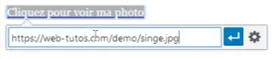 Dans mon cas, le fichier « singe.jpg » est dans le dossier « démo » sur mon site.