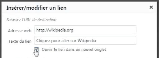 Dans ce cas, le lien mènera au site Wikipédia, mais dans un nouvel onglet de navigateur.